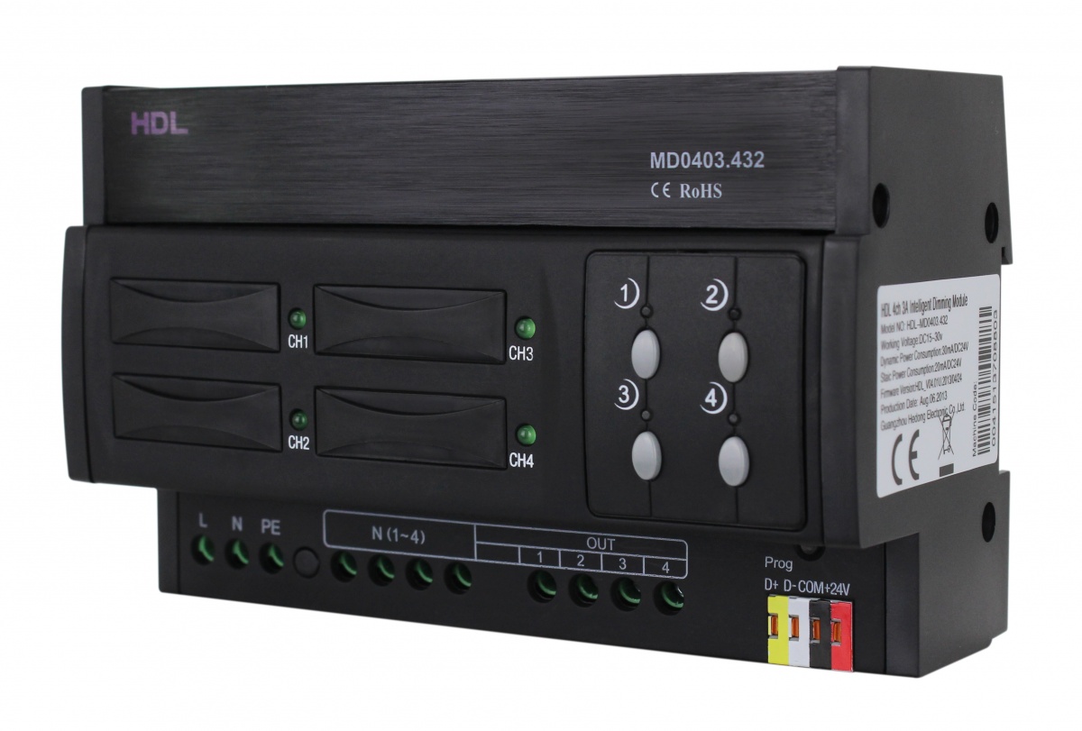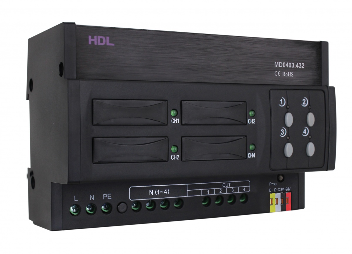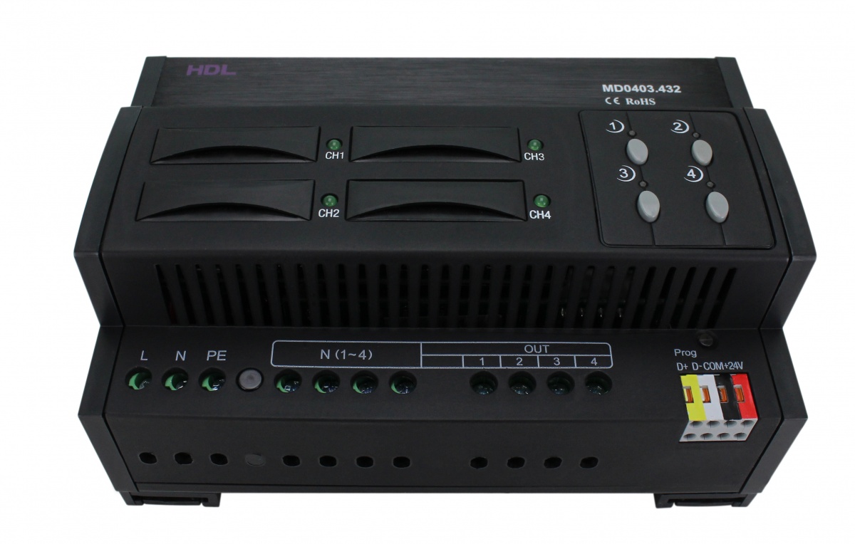 • DIN диммер 4-канальный, 3А на канал HDL-MD0403.432