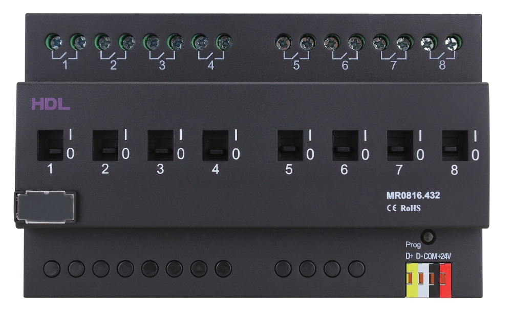 DIN реле, 8-канальное, 16A на канал HDL-MR0816.432 (Устройства исполнительные HDL), Китай